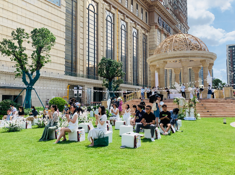 绿树成荫、繁花点缀之下的活动现场